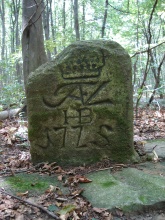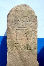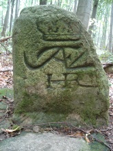 Hraniční kameny se zkratkou JAFVL - iniciály Josefa Jana Adama z Lichtenštejna (JAFVL = Josef Adam Fürst von Liechtenstein).