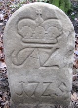 Také další tři hraničníky nesou nápis JAFVL a korunku a liší se pouze letopočty (1725, 1725, 1729).