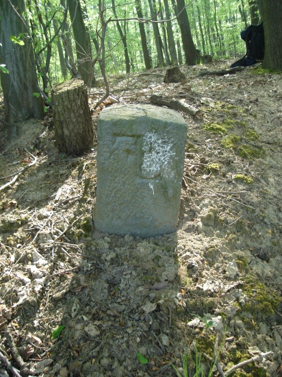 Vlevo hraniční kámen s iniciálami FMVL = Fürst Maxmilian von Liechtenstein (kníže Maxmilián z Lichtenštejna).