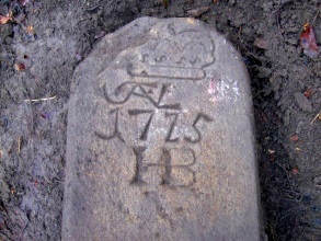 Na 1. a 2. snímku zleva je hraniční kámen s nápisem JAFVL HB 1725.