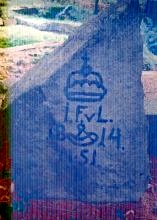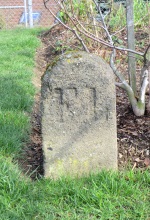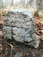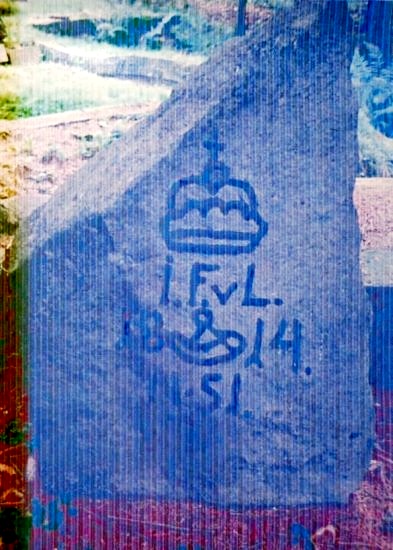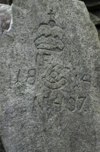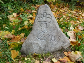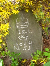 Kámen vpravo: korunka, iniciály I.F.v.L. (Iohann Fürst von Liechtenstein, tedy Jan Josef z Lichtenštejna), vročení 1814, lovčí roh (znak Krnovského knížectví) a pořadové číslo.