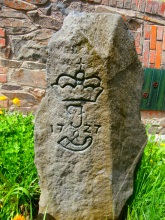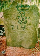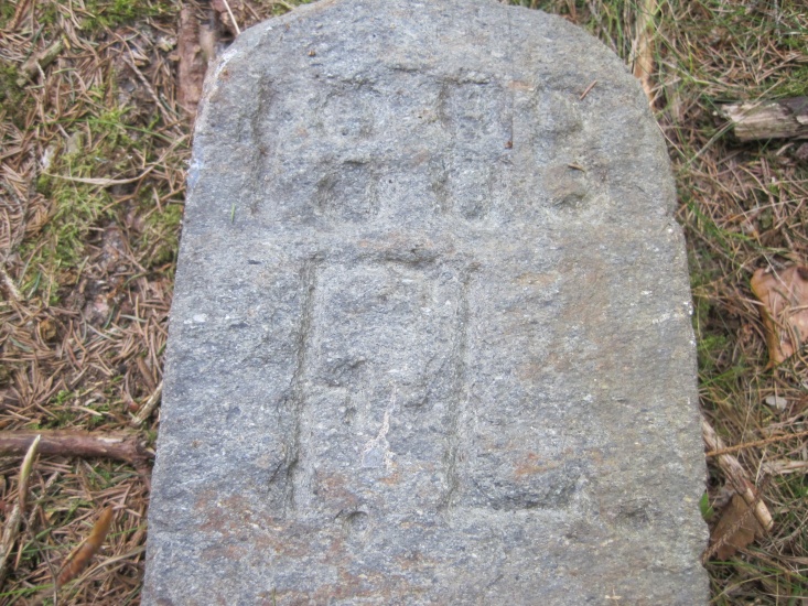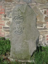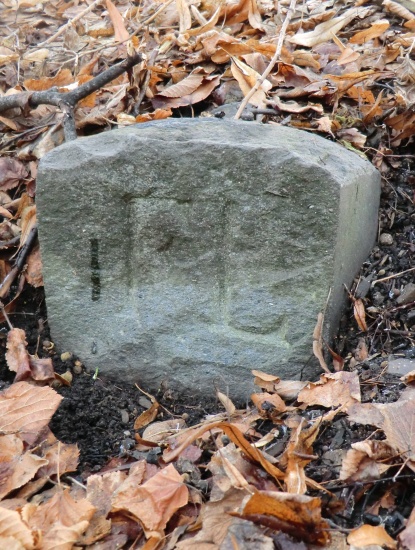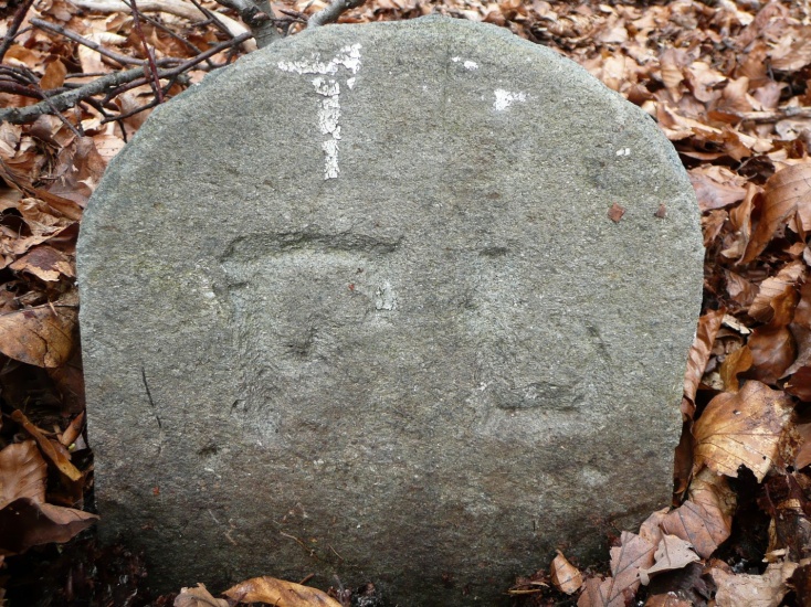 Na hraničním kameni z roku 1727 je vyryta korunka, velké písmeno J (patrně Jägerndorf, tj. Krnov) a symbol krnovského lovčího rohu.