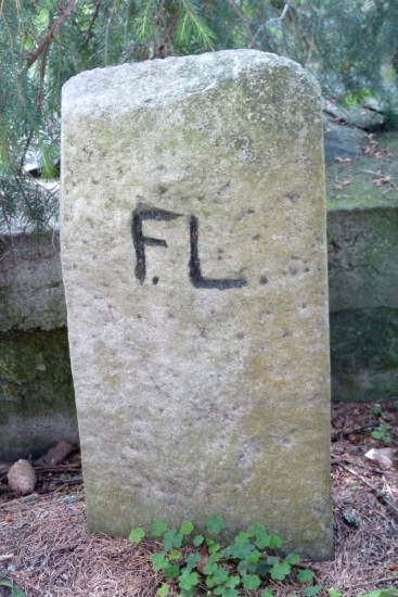 Hraniční kameny nesou vyryté iniciály FL = Fürst Liechstenstein.