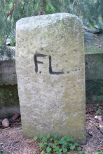 Na hraničních kamenech jsou vyryty iniciály FL = Fürst Liechstenstein.