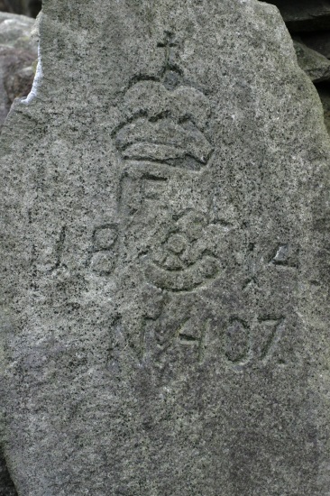 Na hraničním kameni je vyryt letopočet (pravděpodobně 1888) a iniciály FL = Fürst Liechstenstein.