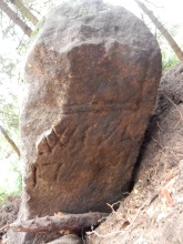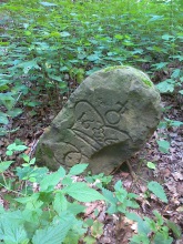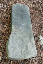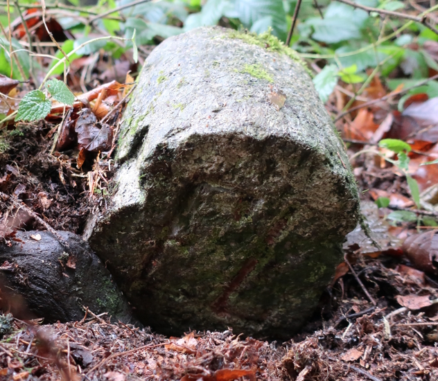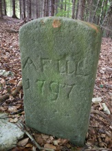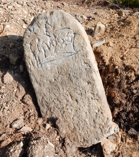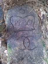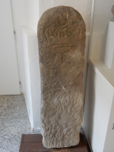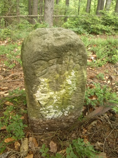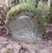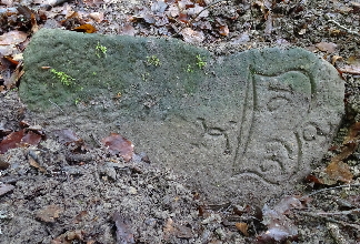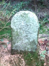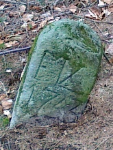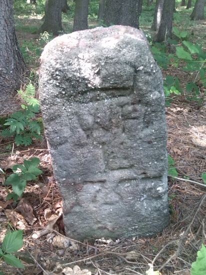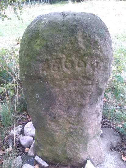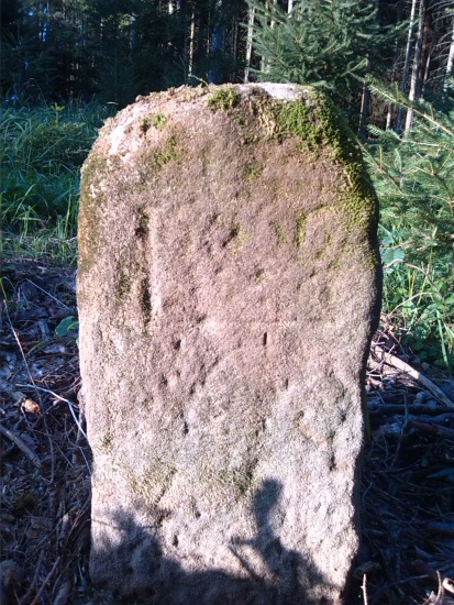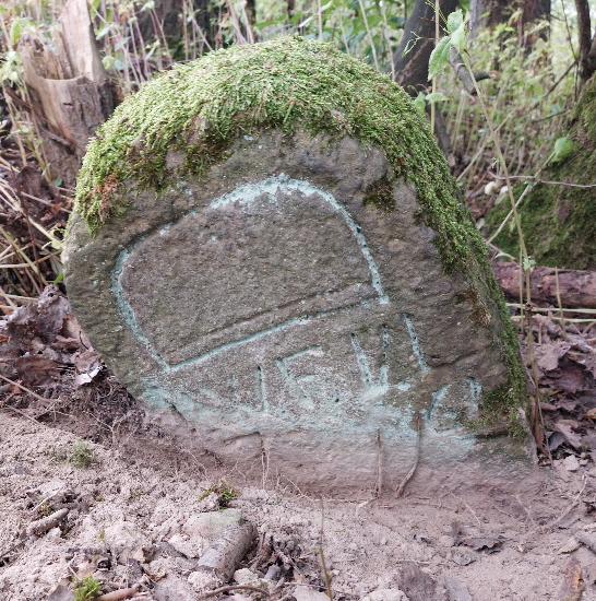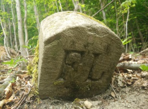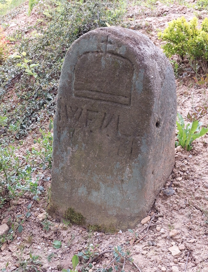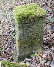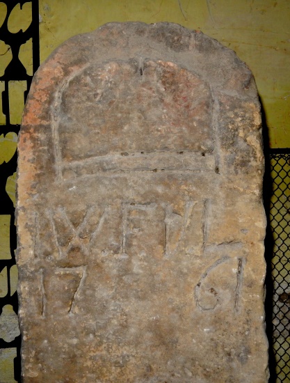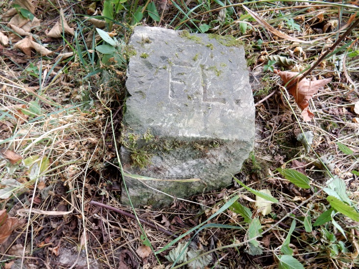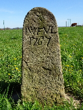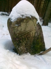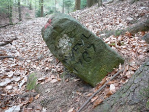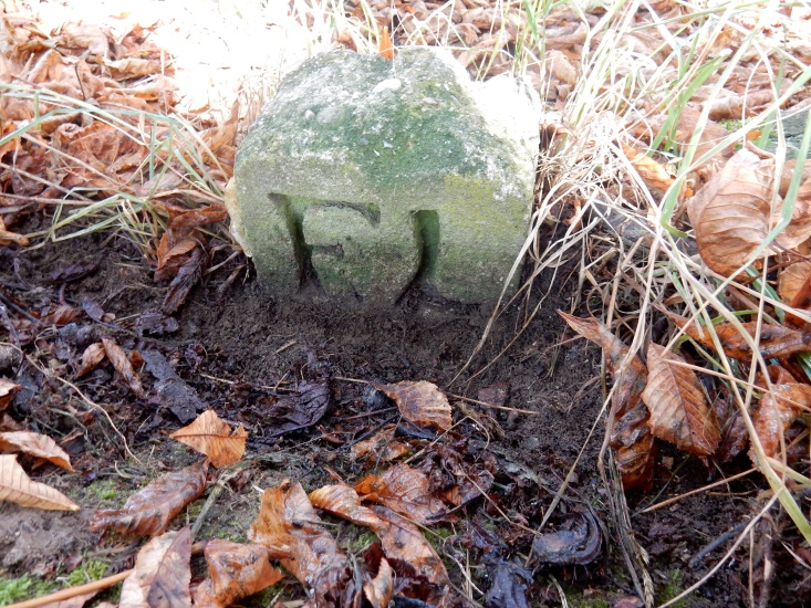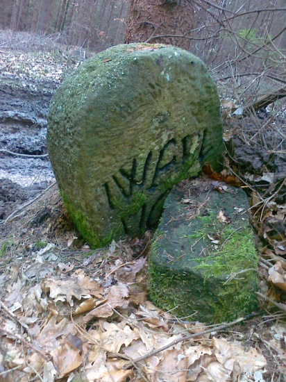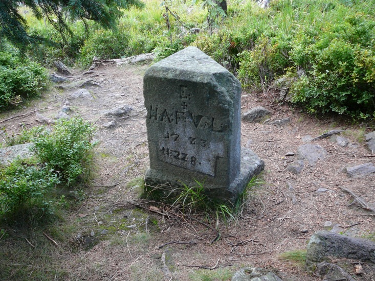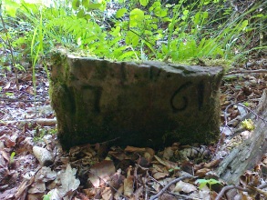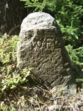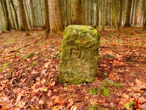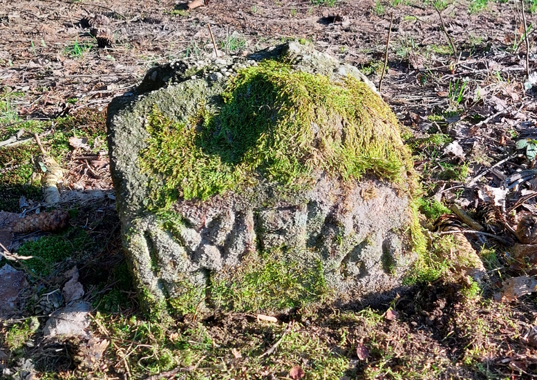Trojboký hraniční kámen s iniciálami IWFVL a letopočtem 1752.