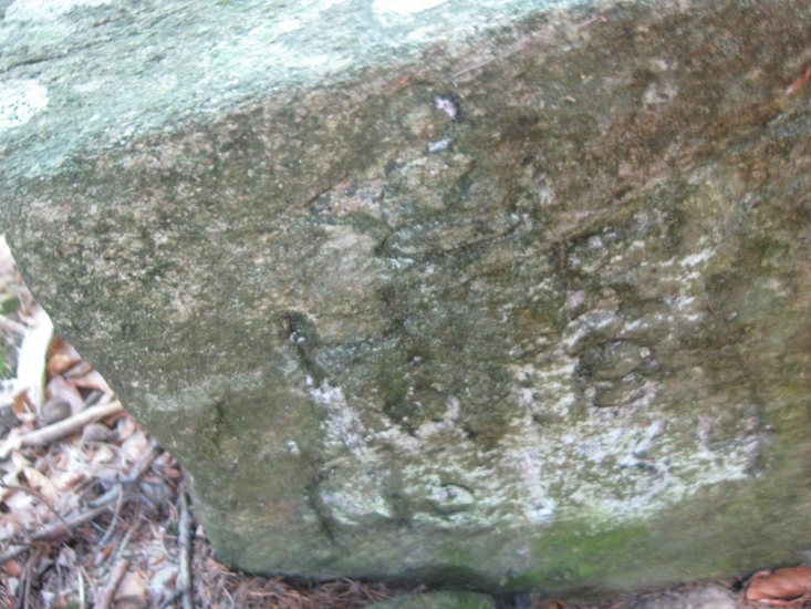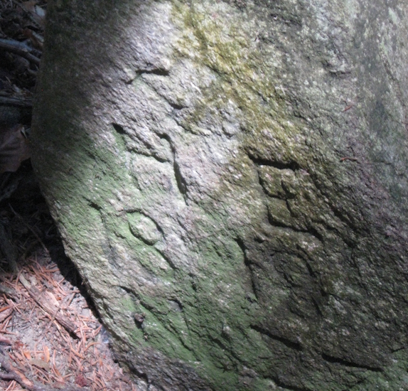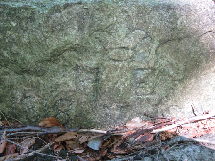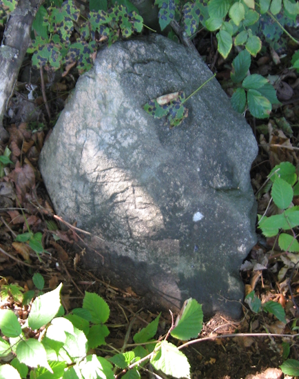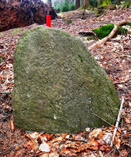 Hraniční kámen z roku 1818 s knížecí korunou a zkratkou HE = Herrschaft Eisenberg.