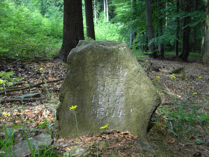 Hraniční kameny z roku 1818 s knížecí korunou a zkratkou HE.