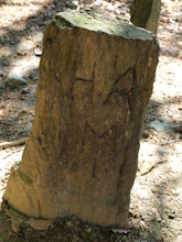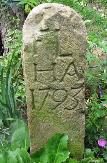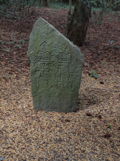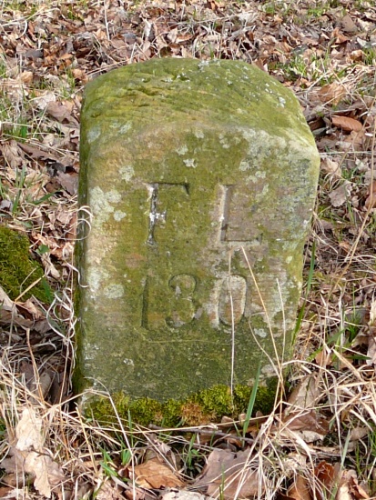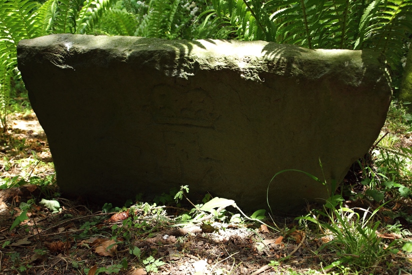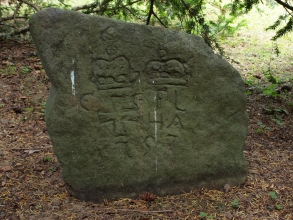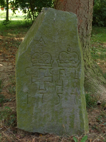 Zmizelý hraniční kámen z roku 1705 u rozcestí Mrtvý muž. Na kameni byla znázorněna knížecí koruna