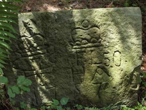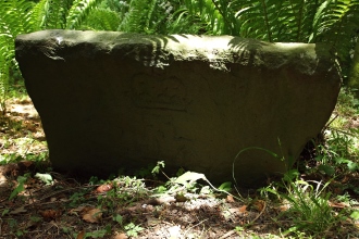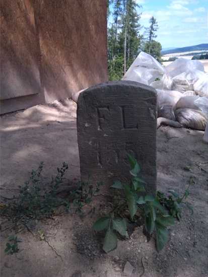 Hraniční kámen z roku 1669 se stylizovanými iniciálami knížete Karla Eusebia z Lichtenštejna.