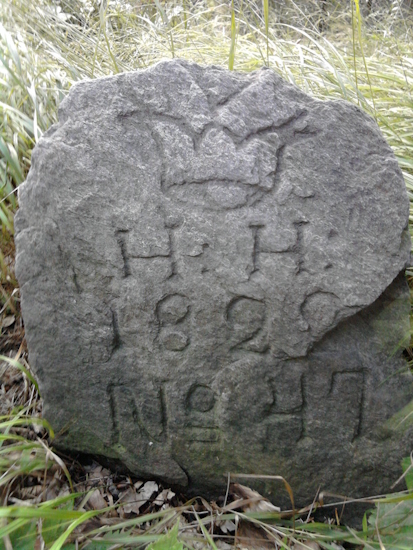 Hraniční kameny s korunou a zkratkou HH = Herrschaft Hohenstadt (panství Zábřeh).