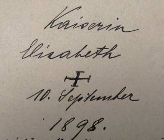 Stejný význam mají také „javory císařovny Alžběty“ zasazené ve stejném roce v hospodářském dílci 42, přímo pod novou silnicí údolím Moravy, k trvalé vzpomínce na císařovnu, jež zemřela bezbožnou rukou vraha. Také v této skupině se nachází památník s následujícím věnováním: