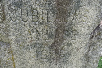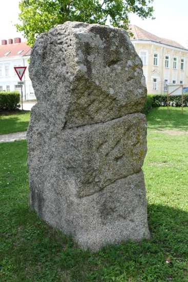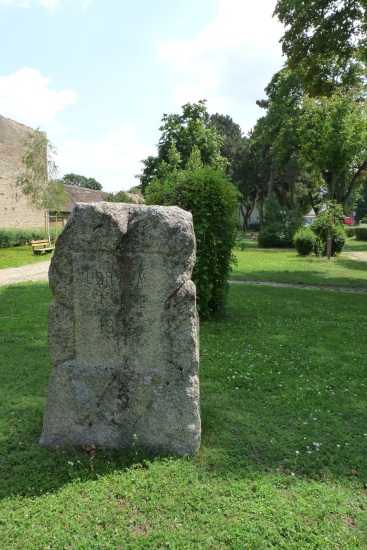 Památník k 50-letému výročí vlády knížete Jana II., zřízený v obci Mistelbach. Nápis na kameni: