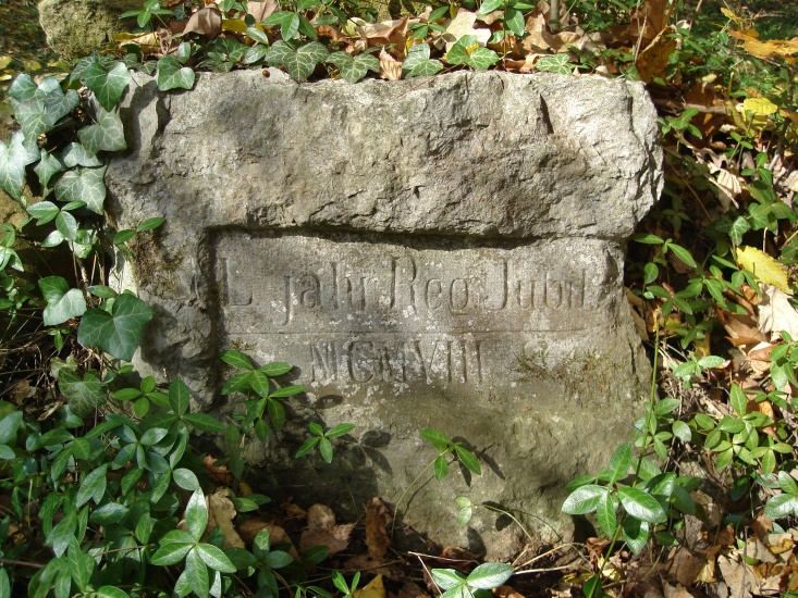 Kámen z roku 1908, umístěný vlevo od asfaltované lesní cesty vedoucí z Lovčic směrem k rozcestí U Slepice. Na obdélníkové vyrovnané ploše kamene o rozměrech 40 x 17 cm je vyryt nápis: