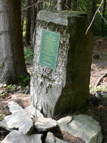 Pamětní kámen již nemá původní nápis, na jeho lícové straně je vruty upevněna tabulka s Prosbou lesa. Kámen se nachází v lese mezi Domašovem a Jívovou.
