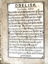 Obelisk připomíná přírodní park založený za Jana I. Josefa knížete z Lichtenštejna (1760-1836).