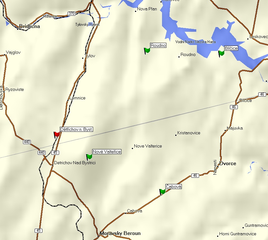 | Původní lesní revíry: | Lesní úřad Karlovec: revíry Bílčice, Čabová, Dětřichov nad Bystřicí, Nové Valteřice, Roudno. |