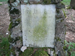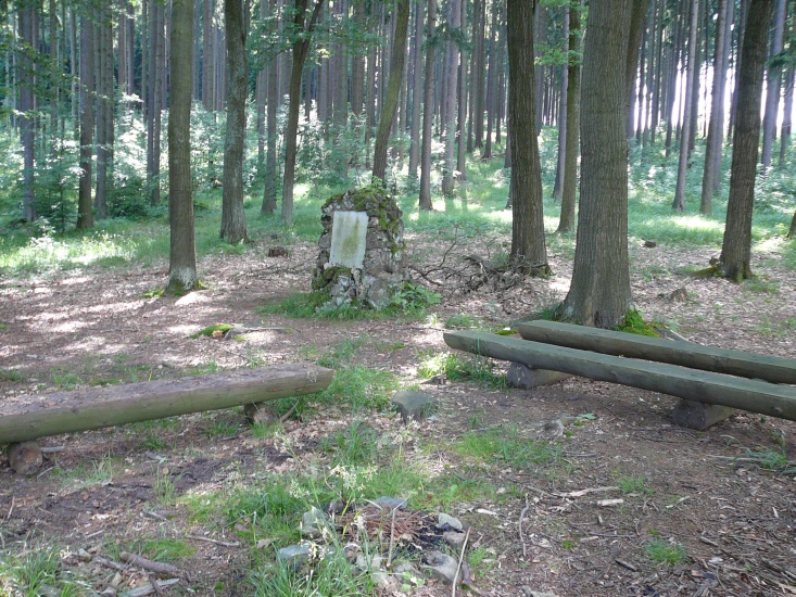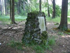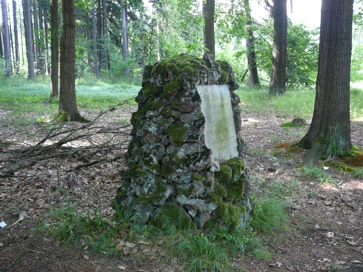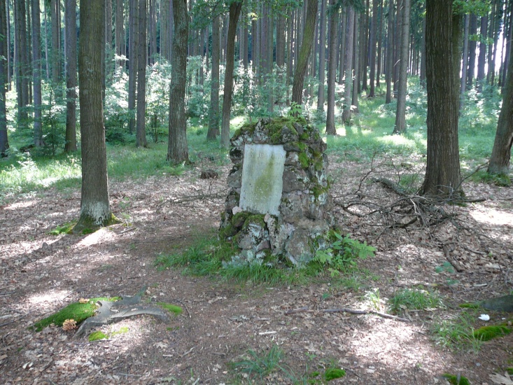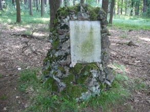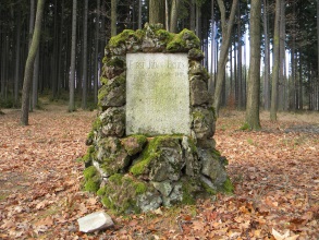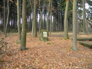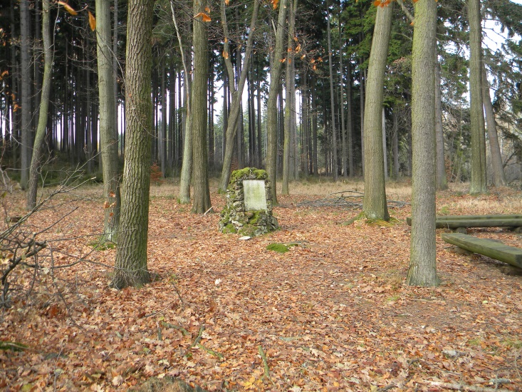 Deska obdélníkového tvaru, zasazená do „mohyly“ vyzděné z neopracovaných kamenů. Na kameni je německý nápis tohoto znění: