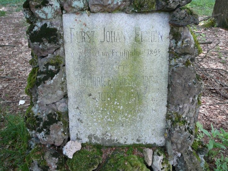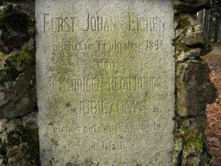 FÜRST JOHANN EICHEN gepflanzt im Frühjahr 1898 zum 40 JÄHRIGEN REGIERUNGS: JUBILÄUM welches auf den 12. November d.J. fällt