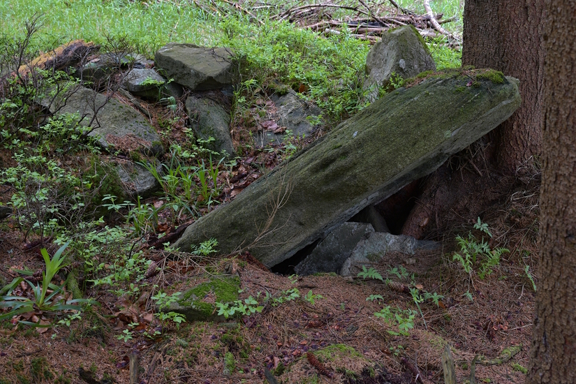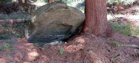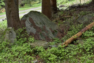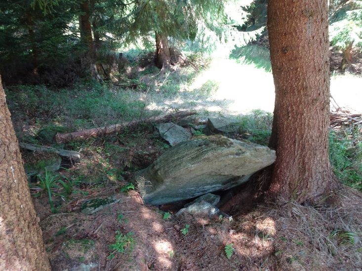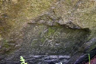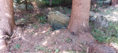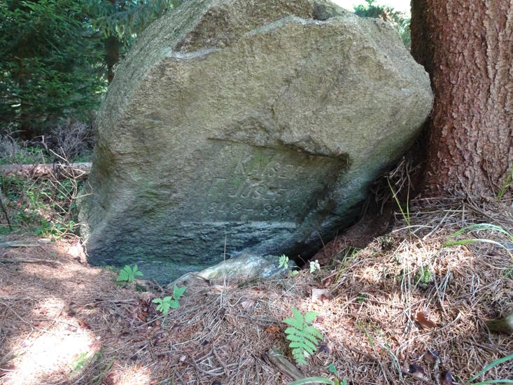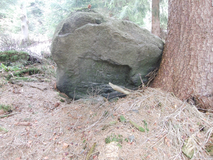 Nepravidelná kamenná deska se zahloubenou obdélníkovou plochou. Kámen je opatřen německým nápisem tohoto znění: