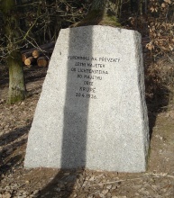 je pravděpodobně přetesaným a přeneseným lichtenštejnským jubilejním kamenem. Toto tvrzení sice bohužel není prokázáno ani doloženo svědectvím pamětníků, v oboře několik set metrů od tohoto kamene však bylo podle historické mapy stanoviště původního lichtenštejnského památníku. Rozměrově i použitým materiálem je kámen blízký lichtenštejnskému památníku v Louňovicích. Kámen se nachází v lese severozápadně od Krupé, u rozcestí lesních cest.