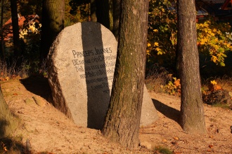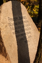 Kámen obdélníkového tvaru, nahoře přitesaný téměř do půlkruhovitého zaoblení. Latinský nápis na kameni je zvýrazněn černou barvou: