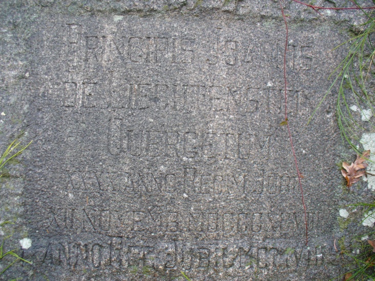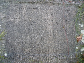 Kámen obdélníkového tvaru s okosenými horními rohy. V obdélníkové mírně zahloubené ploše je vyryt latinský nápis: