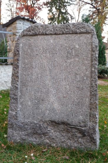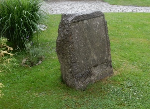 Památník má tvar kvádru s mírně zaoblenými horními rohy. Na přední straně kamene je vyryt následující latinský nápis:
