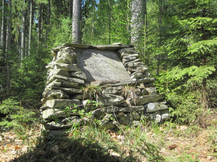 Deska obdélníkového tvaru, zasazená do památníku vyzděného z neopracovaných kamenů. Na kameni je německý nápis tohoto znění:
