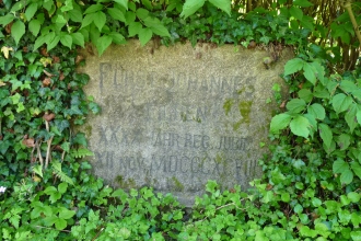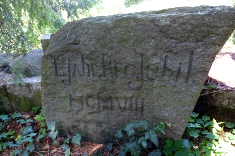 Na místě původního památníku západně od Pochně je pouze několik neopracovaných kamenů. Původní kamenné desky z let 1898 a 1908 jsou uloženy v soukromých rukou. Na větší desce je německý nápis tohoto znění: