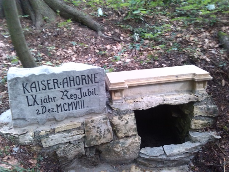 Kámen připomíná výsadbu císařských javorů u příležitosti výročí panování císaře Františka Josefa I. Kámen má obdélníkový tvar a je opatřen německým nápisem: