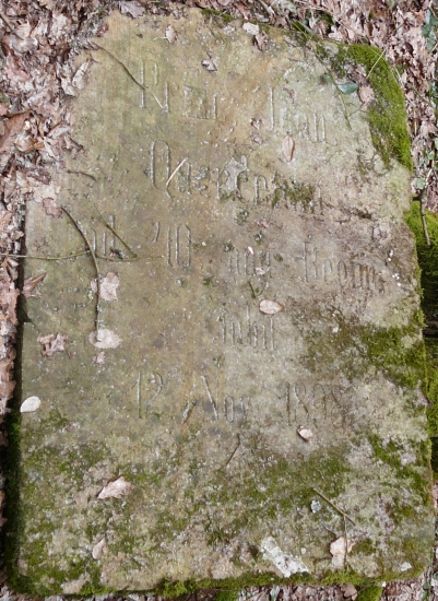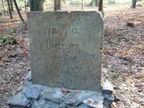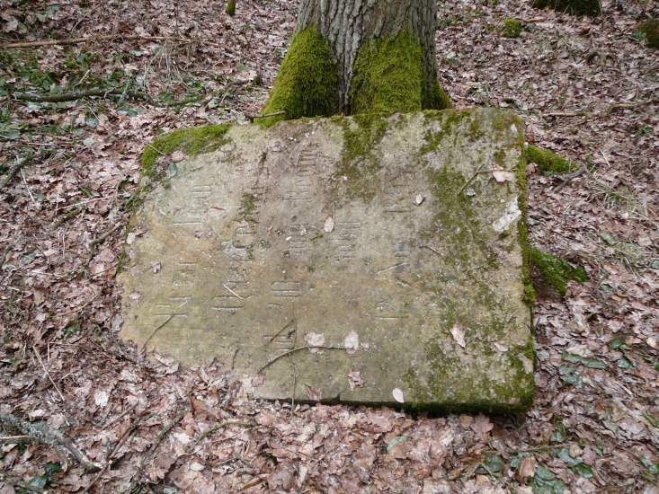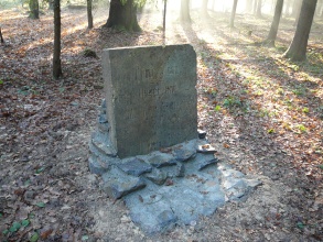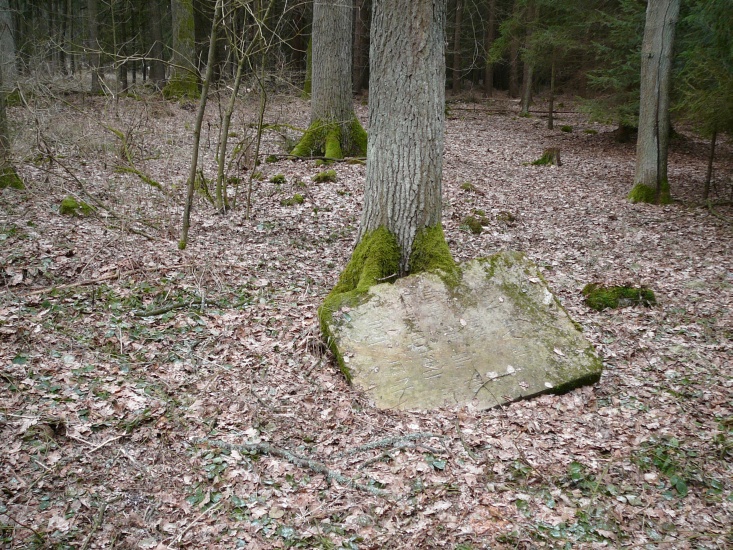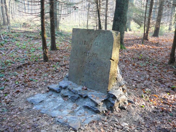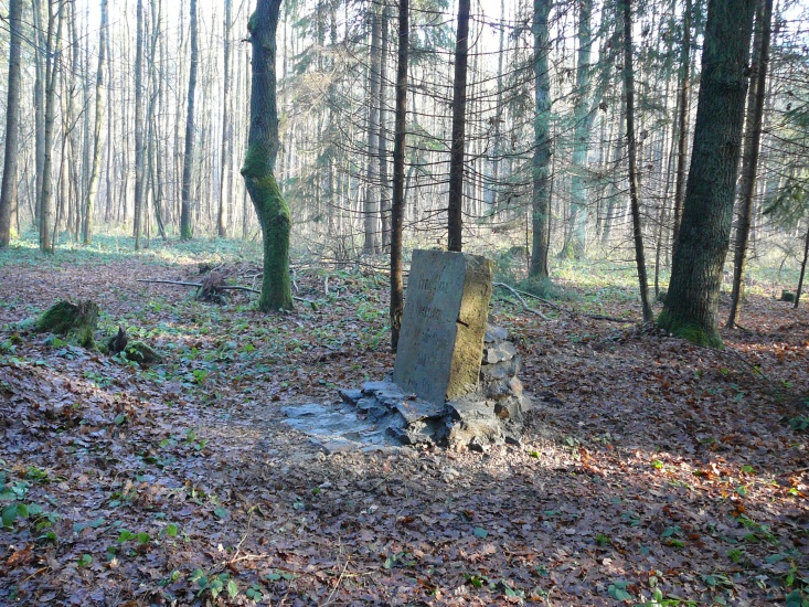 Obdélníková kamenná deska, ležící několik metrů od stanoviště někdejšího památníku. Na desce je vyryt latinský nápis: