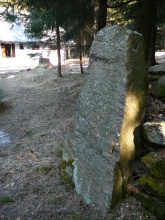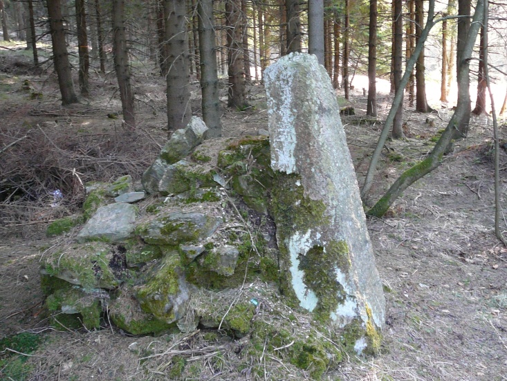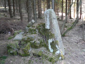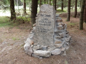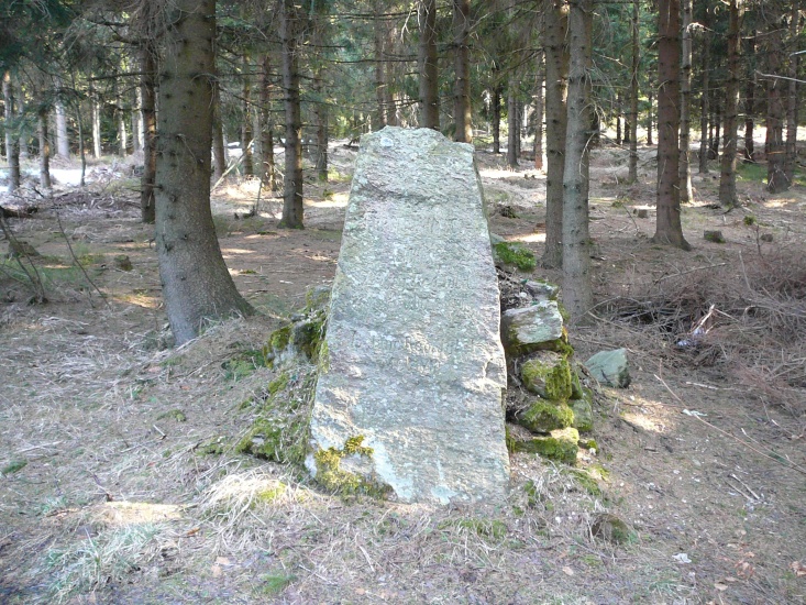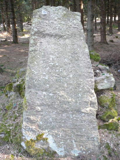 Kamenná deska, která se směrem nahoru zužuje. Kámen je opatřen německým nápisem: