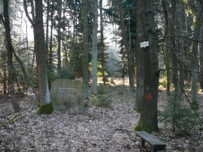 Kamenná deska přibližně čtvercového tvaru, s okosenými horními rohy. V přední straně desky je hladce zarovnána obdélníková plocha s nápisem: