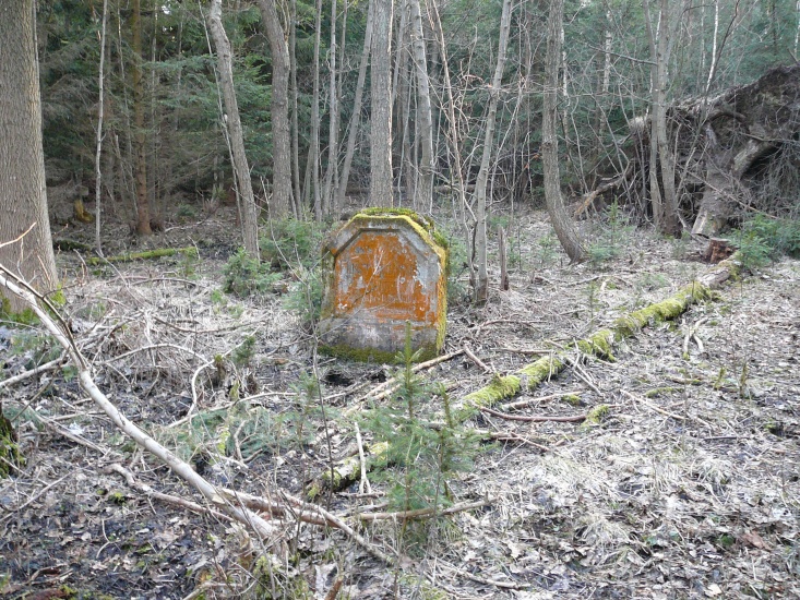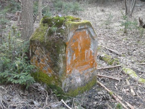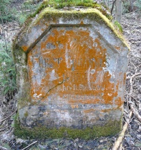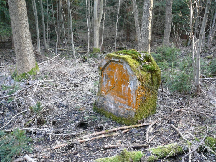 Kámen ve tvaru obdélníkové desky s šikmo okosenými horními rohy. Na přední straně kamene je zahloubena srovnaná plocha ve tvaru šestiúhelníku, souměrného podle svislé osy. V této ploše je vyryt následující německý nápis: