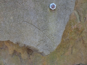 Obdélníková kamenná deska, vpravo dole mírně poškozená. Na desce je vyryt německý nápis tohoto znění:
