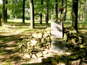 V „mohyle“ nasypané z kamenů je umístěna deska obdélníkového tvaru datovaná rokem 1898. Na desce je vyryt latinský nápis: