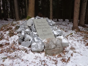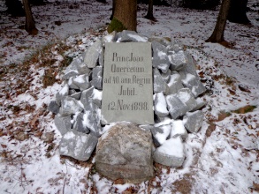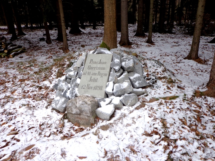 Před ní je umístěna kamenná tabule z r. 1908 s nápisem „L jähr. Reg. Jubil. MCMVIII“. Památník se nachází vpravo od lesní cesty, která vede od hájovny Blatice na severozápad. V roce 2014 byla rozlámaná kamenná deska restaurována a celý památník byl na náklady podniku Lesy ČR opraven.