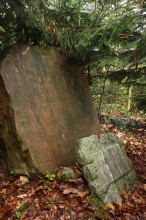 Kámen z červeného nučického pískovce, přibližně ve tvaru obdélníkové desky s výrazně okosenými horními rohy. Kámen je opatřen tímto nápisem: