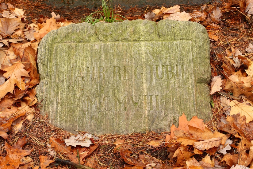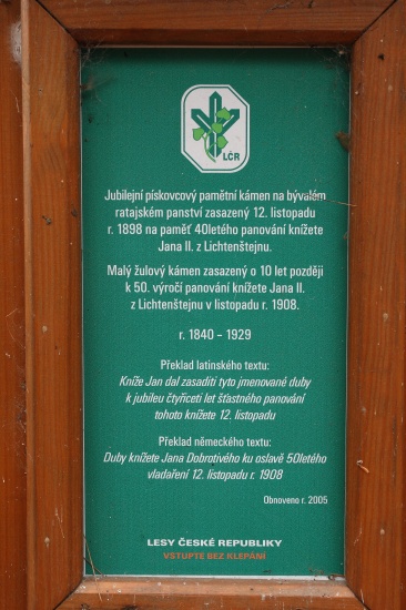 Součet římských číslic v chronogramu v latinské části nápisu udává datování rokem 1898. Před velkým kamenem je umístěna doplňující žulová tabulka z r. 1908. Na tabulce je vyrovnána obdélníková plocha, na níž je vyryt nápis „L JÄHR REG. JUBIL. MCMVIII“.