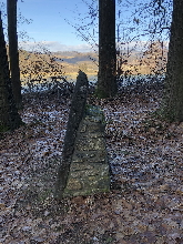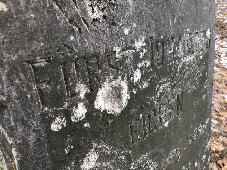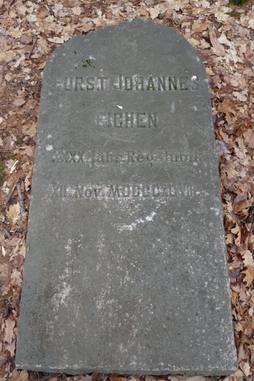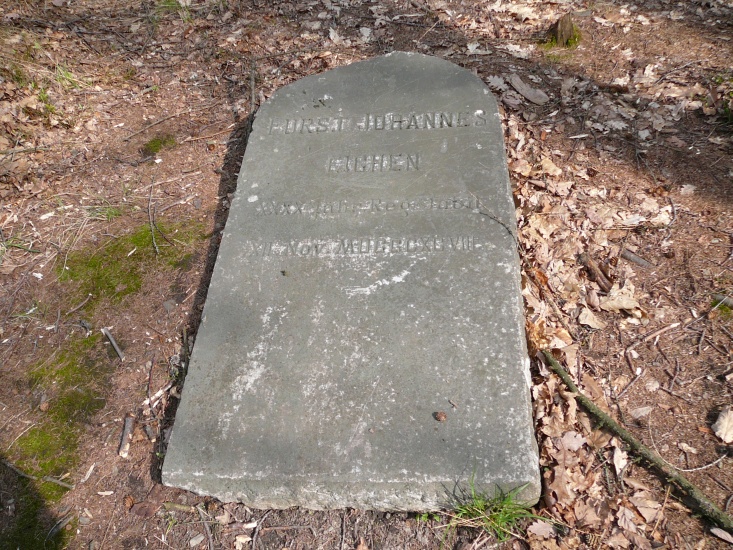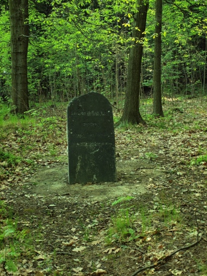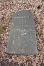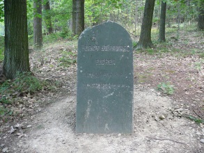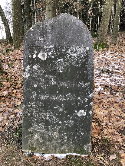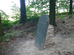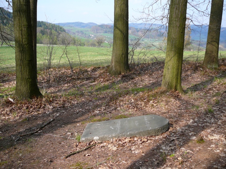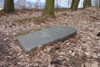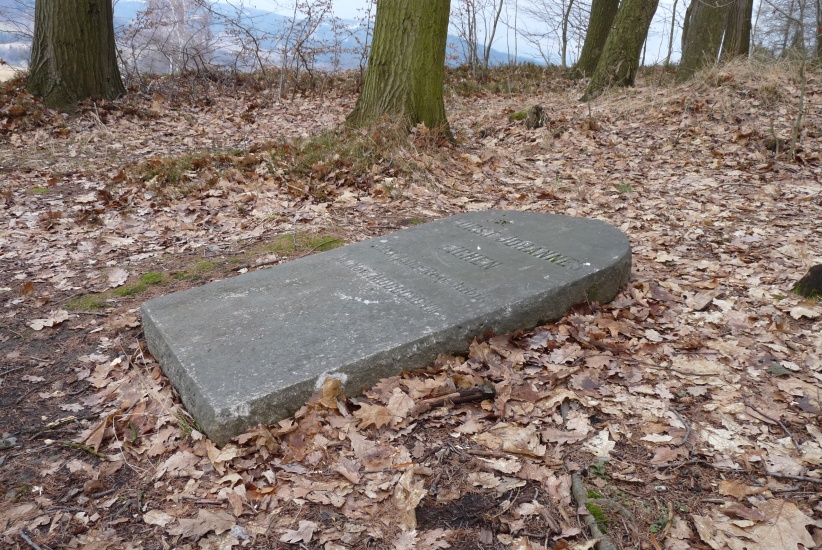 Povalená kamenná deska obdélníkového tvaru, nahoře půlkruhovitě zaoblená. Deska nese německý nápis: