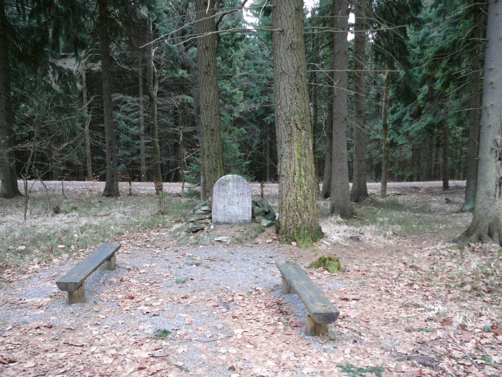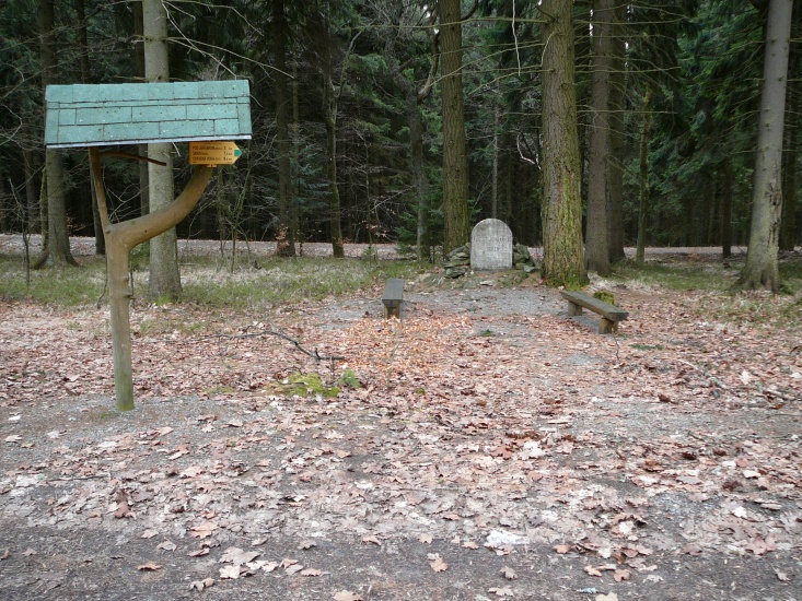 Kamenná deska z r. 1898, nahoře půlkruhovitě zaoblená, opatřená německým nápisem tohoto znění: