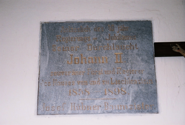 Anlässlich des 40 jähr. Regierungs-Jubiläums Seiner Durchlaucht Johann II. souveräner Fürst und Regierer des Hauses von und zu Liechtenstein 1858 - 1898 Josef Hübner Baumeister