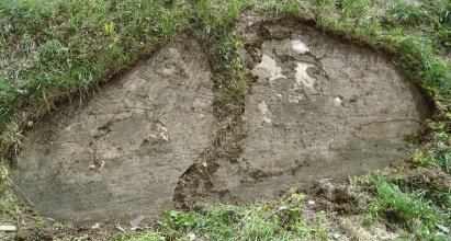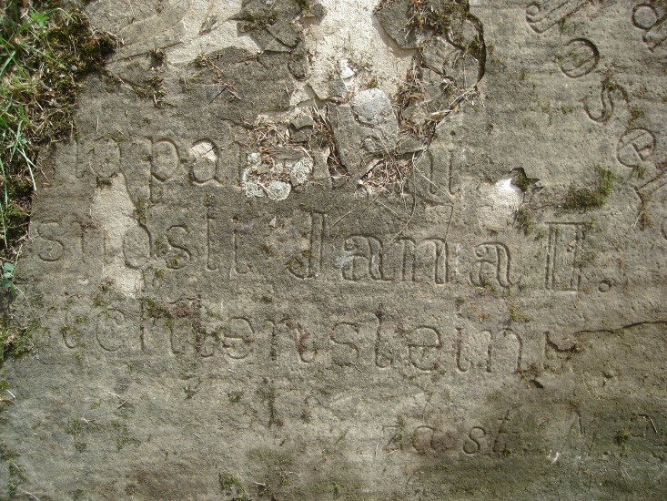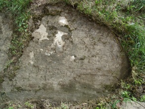 Deska je rozlomena na dvě části a její povrch je silně zvětralý, takže se části nápisu odlupují. Za upozornění na tento kámen děkujeme panu Janu Mičkovi z Kuželova.
