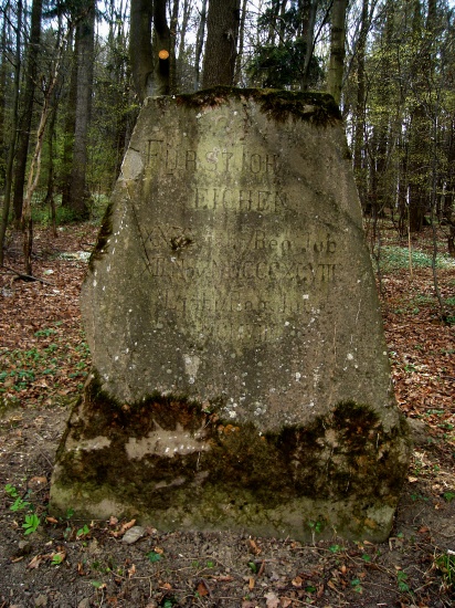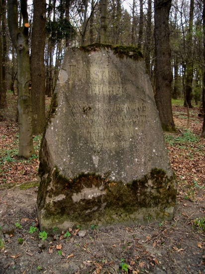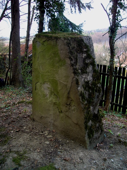 Kamenná deska ve tvaru lichoběžníku, souměrného podle svislé osy. Na lícové straně je vyryt německý nápis, připomínající 40. výročí vlády knížete Jana II. z Lichtenštejna: