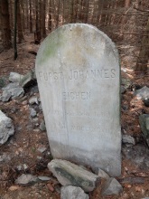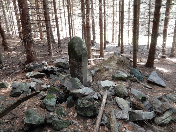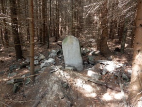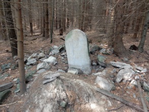 Půlkruhovitě zaoblená kamenná deska s německým nápisem: