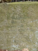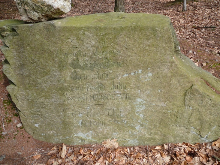 Kamenná deska neobvyklého tvaru široká asi 2 m a vysoká přibližně 1 m. Na desce je vyryt následující latinský nápis: