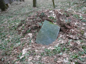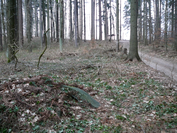 Kamenná deska, ležící v místě někdejšího památníku asi 1,5 km severně od Hoštejna. Na kameni je vyryt latinský nápis: